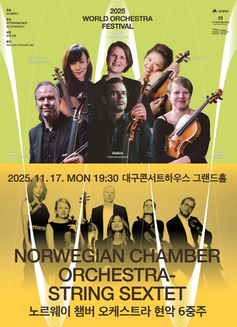 [뉴스다컴] (재)대구문화예술진흥원 대구콘서트하우스는 오는 11월 17일 저녁 7시 30분, 그랜드홀에서 2025 월드오케스트라페스티벌’의 하나로 노르웨이 챔버 오케스트라 공연을 개최한다.