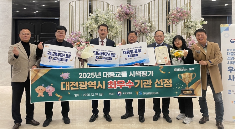 [뉴스다컴] 대전시는 국토교통부 주관 2025년 대중교통 시책평가에서 최우수기관으로 선정돼 19일 장관 표창을 수상했다.