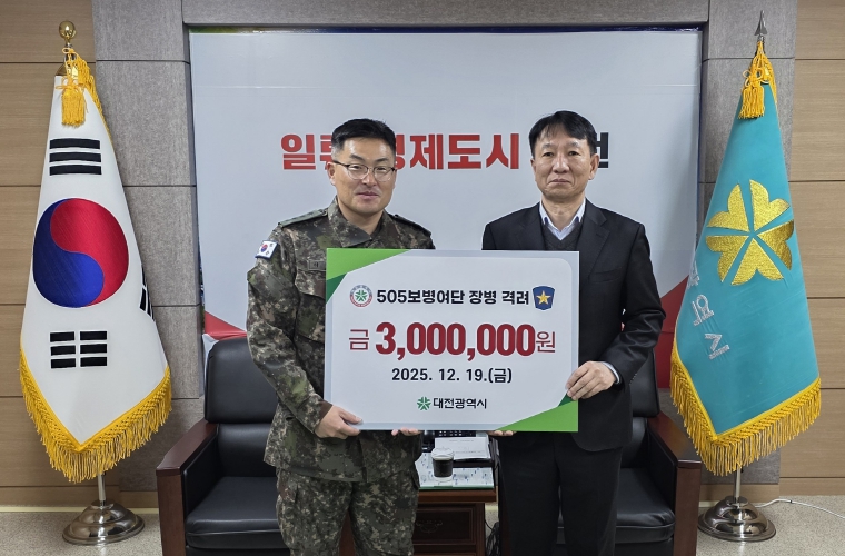 [뉴스다컴] 대전시는 19일 오전, 제1970부대에 ‘25년 비상대비훈련을 성공적으로 마친 국군 장병의 노고를 격려하고 국가안보 헌신에 감사의 뜻을 담아 위문금을 전달했다.