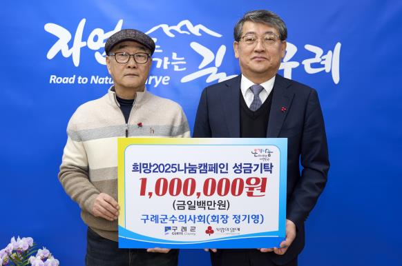 김순호 구례군수는 “연말연시 이웃을 위한 따뜻한 나눔에 동참해주신 구례군수의사회에 깊이 감사드린다”며 “기탁해주신 성금은 도움이 필요한 이웃들에게 소중히 전달해 따뜻한 겨울을 보낼 수 있도록 하겠다”고 전했다.