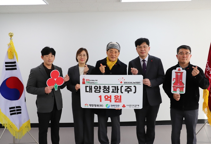 박기형 대양청과㈜ 대표는 “이번 성금이 추운 겨울을 보내는 소외된 이웃들에게 실질적인 힘과 위로가 되길 바란다”며, “지역사회 구성원 모두가 소외됨 없이 건강하고 따뜻한 연말을 보낼 수 있도록 앞으로도 세심한 지원을 이어가겠다”고 말했다.