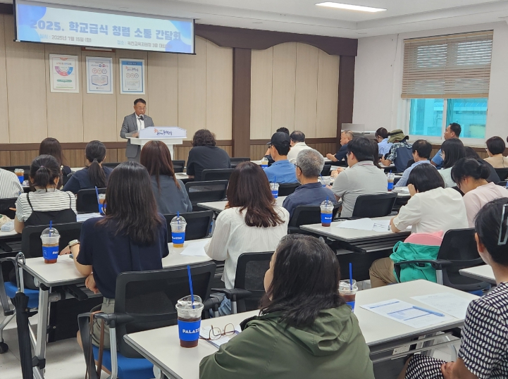 [뉴스다컴] 옥천교육지원청은 2025년 7월 15일 옥천교육지원청 대회의실에서 학교급식 식재료 납품업체 12개소 대표와 관내 유·초·중·고등학교 영양사·영양교사 및 학교급식 식재료 계약담당자 46명을 대상으로 ‘2025년 학교급식 청렴·소통 간담회’를 실시했다.
