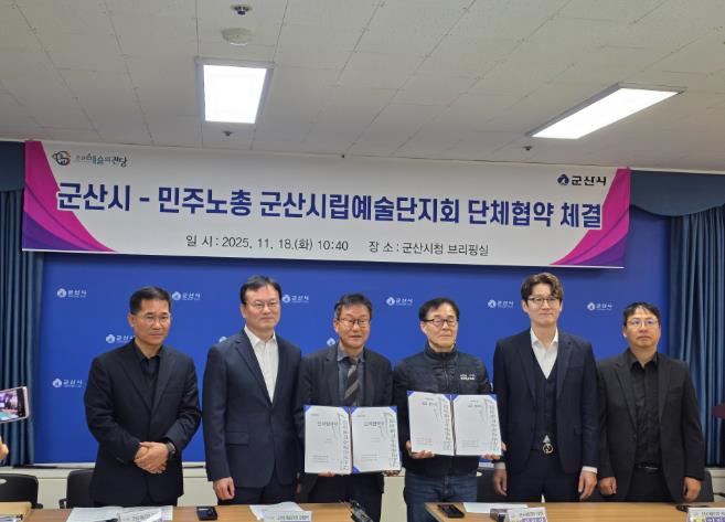 [뉴스다컴] 군산시와 민주노총 공공운수사회서비스노조 군산시립예술단지회가 시립예술단의 운영 안정화와 지속적인 발전을 위한 단체협약을 18일 체결했다고 밝혔다.