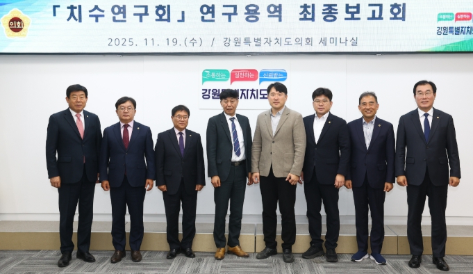 [뉴스다컴] 강원특별자치도의회 의원연구단체인 치수연구회(회장 윤길로 의원, 간사 전찬성 의원)는 11월 19일 도의회 세미나실에서 '강원특별자치도 수변지역 관광자원화 방안 연구' 최종보고회를 개최했다.