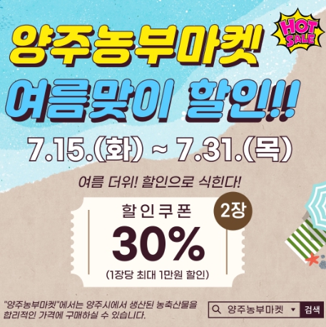 [뉴스다컴] 양주시가 운영하는 농특산물 온라인 쇼핑몰'양주농부마켓'에서 15일부터 7월31일까지 17일간 여름맞이 특별 할인행사를 진행한다.