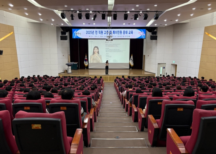 [뉴스다컴] 광주시는 15일 시청 수어장대홀에서 공직자의 민원 응대 능력 향상과 안전하고 효율적인 근무 환경 조성을 위해 ‘고충 및 특이민원 응대 교육’을 실시했다.