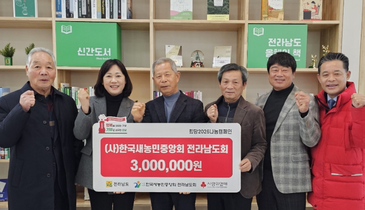 [뉴스다컴] 전라남도는 7일 (사)한국새농민중앙회 전남도회가 연말연시 이웃사랑 실천을 위한 ‘희망2026 나눔캠페인’에 성금 300만 원을 전달했다고 밝혔다.