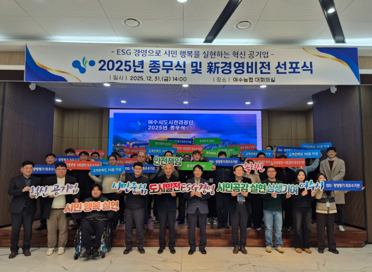 [뉴스다컴] 여수시도시관리공단은 31일 공단 대회의실에서 ‘新 경영비전 선포식’을 개최하고, 향후 5년간 공단이 나아갈 새로운 경영 철학과 조직 혁신 의지를 대내외에 공식적으로 밝혔다.