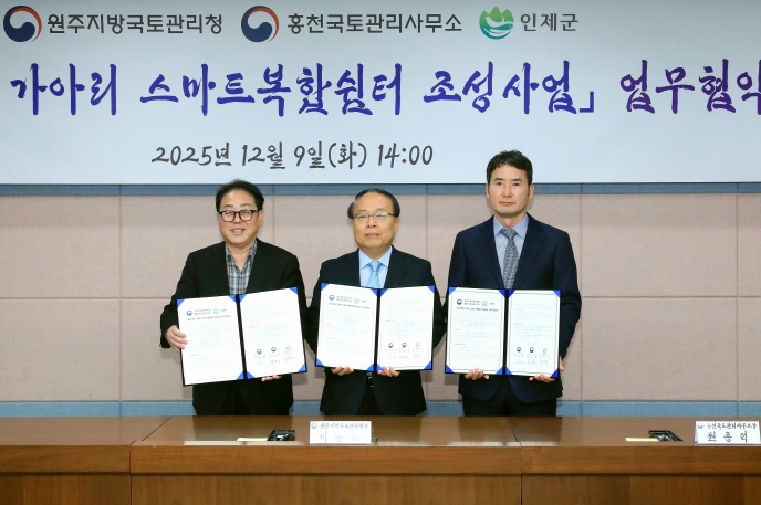 [뉴스다컴] 인제군과 원주지방국토관린청, 홍천국토관리사무소가 12월 9일 인제군청 소회의실에서 ‘국도31호선 가아리 스마트복합쉼터 조성사업’ 추진을 위한 업무협약을 체결했다.