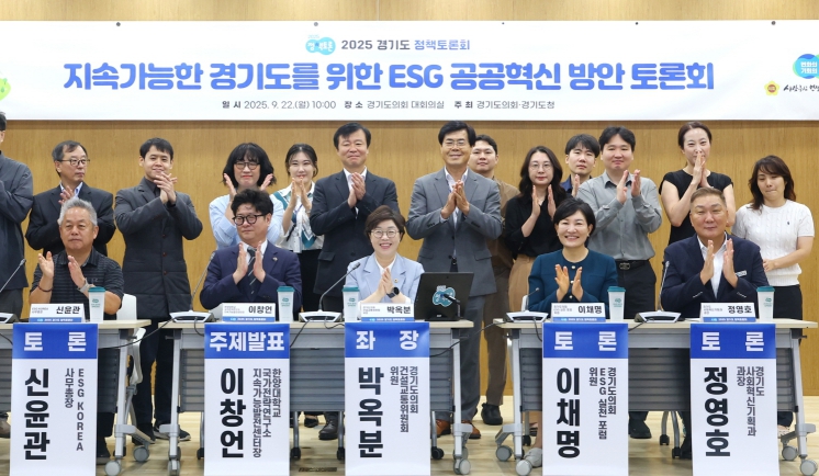 [뉴스다컴] 경기도의회 건설교통위원회 박옥분 의원(더불어민주당, 수원2)이 좌장을 맡은 '지속가능한 경기도를 위한 ESG 공공혁신 방안 정책토론회'가 9월 22일 경기도의회 대회의실에서 개최됐다. 본 토론회는 경기도와 경기도의회가 공동으로 주최하는 ‘2025 경기도 정책토론회’의 일환으로 개최됐다.