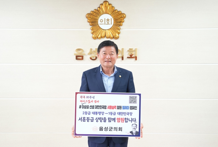 [뉴스다컴] 김영호 음성군의회 의장은 지난 7월 16일 독립운동가 보재 이상설 선생의 숭고한 업적을 기리고 서훈(敍勳) 등급 승격에 대한 사회적 공감대를 확산시키기 위해 ‘이상설 선생 서훈 승격 염원 릴레이 캠페인’에 동참했다.