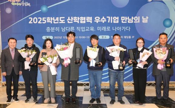 [뉴스다컴] 충남교육청은 24일, 천안 일원에서 직업계고 산학협력 활성화에 기여한 우수기업 40개사에 감사패를 수여하고, 우수 협력 사례를 공유하는 ‘2025학년도 산학협력 우수기업 만남의 날’ 행사를 개최했다.