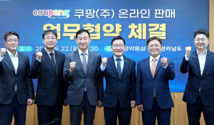 [뉴스다컴] 전라남도는 22일 도청 정약용실에서 쿠팡㈜, 전남도상인연합회와 함께 ‘전통시장 온라인 판로 확대를 위한 업무협약’을 했다고 밝혔다.