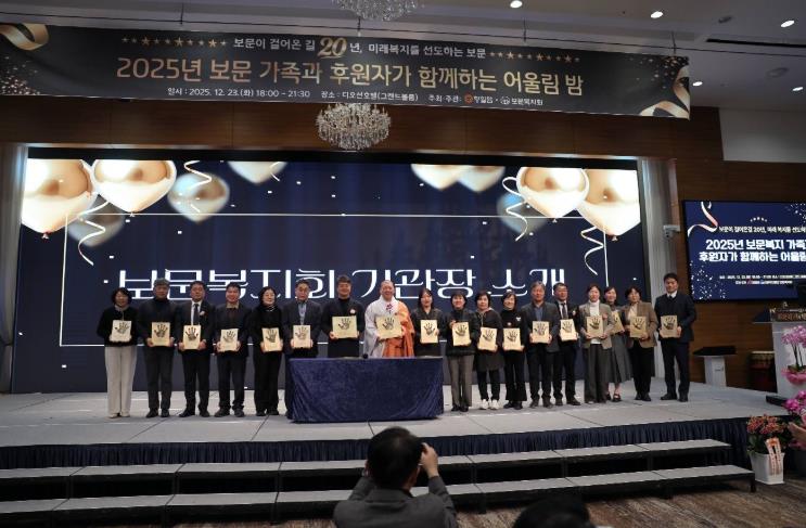 [뉴스다컴] 사회복지법인 보문복지회는 설립 20주년을 기념해 지난 12월 23일 디오션호텔 그랜드볼룸에서 ‘2025년 보문 가족과 후원자가 함께하는 어울림 밤’을 개최했다.