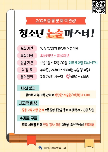 | ▲ 2025 청소년 논술마스터 |