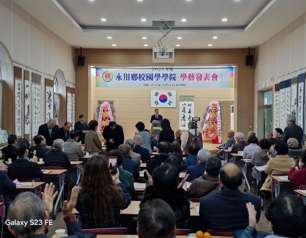 [뉴스다컴] 영천향교 국학학원(원장 이덕기)은 지난 23일 본원 3층 대강당에서 관내 단체장과 수강생 등 200여 명이 참석한 가운데 ‘2025년 정기 학예발표회’를 성황리에 개최했다.
