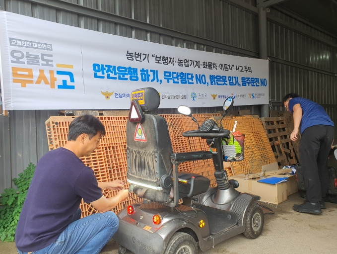 이번 교육은 농업기계 순회 수리교육과 더불어 전라남도농업기술원, 광주전남교통안전공단이 협력하여 진행하며, 교통사고 예방을 위한 후미 반사등 부착·배포 활동도 병행했다.