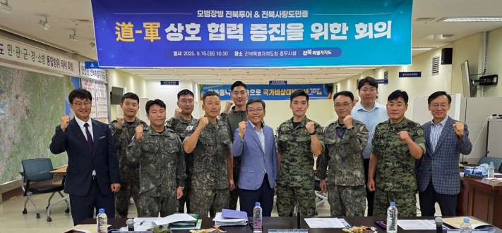 [뉴스다컴] 전북특별자치도는 16일 도청 충무시설에서 도내 주요 군부대와 함께 ‘道-軍 상호 협력 증진 회의’를 개최하고, 지역사회와 군 간의 유기적인 소통 및 협력 방안을 논의했다고 밝혔다.