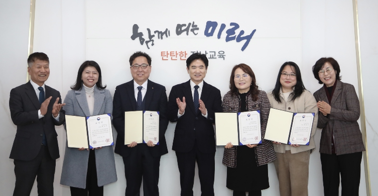 [뉴스다컴] 전라남도교육청은 12일 교육감실에서 2025년 학부모 교육참여 활성화 유공으로 교육부 장관상을 수상한 박은실, 박수진, 송연재, 한유진 학부모의 표창장 전수식을 가졌다.