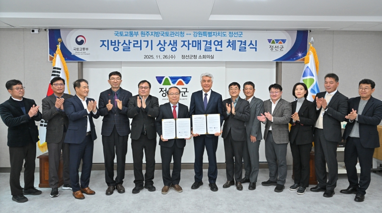 [뉴스다컴] 정선군은 11월 26일 정선군청에서 국토교통부 원주지방국토관리청(청장 이동민)과 ‘지방살리기 상생 자매결연 업무협약’을 체결했다고 밝혔다.