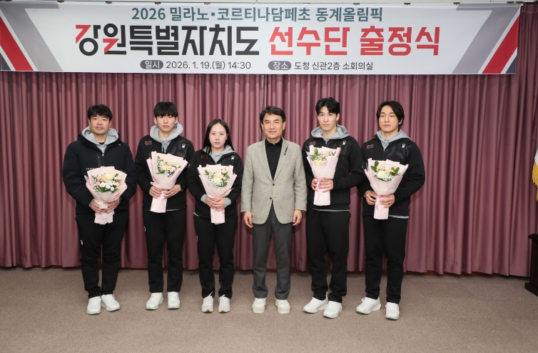 [뉴스다컴] 강원특별자치도(도지사 김진태)는 1월 19일(월) 오후 2시 30분, 도청 신관 소회의실에서 ‘2026 밀라노·코르티나담페초 동계올림픽’에 출전하는 도 선수단의 선전을 기원하는 출정식을 개최했다.