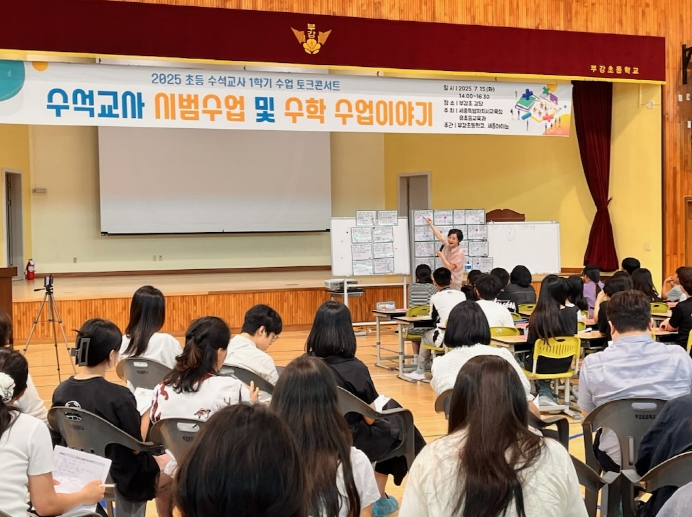 [뉴스다컴] 세종특별자치시교육청은 7월 15일 부강초등학교 강당에서 정년퇴직한 대구의 최혜경 수석교사를 초청하여 초등 수학교과 시범수업 및 토크콘서트를 개최했다.