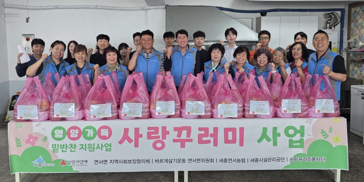 사랑꾸러미 사업은 세종사회복지공동모금회의 지원과 산장가든‧카페 오뜨몽드‧칠보농원‧세종연서농협의 후원을 받아 매월 1회 진행되는 사업이다.