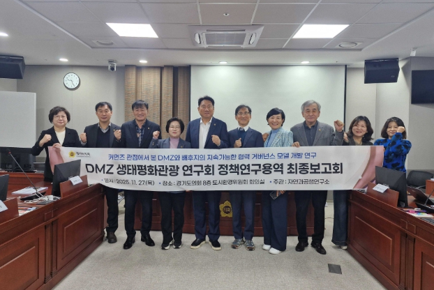 [뉴스다컴] 경기도의회 의원연구단체인 DMZ생태평화관광 연구회(회장 오준환 의원)는 지난 27일 경기도의회 도시환경위원회 회의실에서 '커먼즈 관점에서 본 DMZ와 배후지의 지속가능한 협력 거버넌스 모델 개발 연구' 용역 최종보고회를 개최했다.