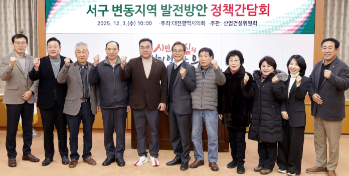 [뉴스다컴] 대전시의회 산업건설위원회 김영삼 의원(국민의힘, 서구2)은 3일 대전시의회 소통실에서 ‘변동지역 발전방안 정책간담회’를 열고 주민들과 주요 현안을 논의했다.