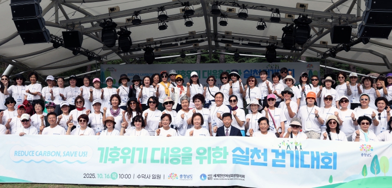 [뉴스다컴] 충남도와 세계한인여성회장협의회는 16일 예산 수덕사 일원에서 기후 위기에 대응하고 일상 속 친환경 실천을 독려하기 위한 ‘탄소중립 실천 걷기대회’를 개최했다.