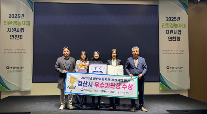 [뉴스다컴] 경산시는 27일 세종시 코트야드 메리어트에서 열린 농림축산식품부 주관의 2025년 친환경농자재 지원사업 연찬회에서 '친환경농자재 지원사업 평가' 우수 기관상을 수상했다고 밝혔다.