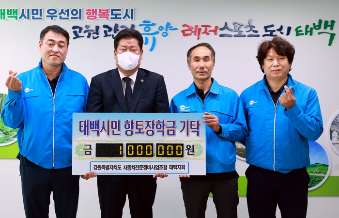 [뉴스다컴] 태백시는 지난 2일 강원특별자치도 자동차전문정비사업조합 태백지회가 지역 인재 육성을 위해 장학금 100만 원을 (재)태백시민향토장학회에 기탁했다고 밝혔다.