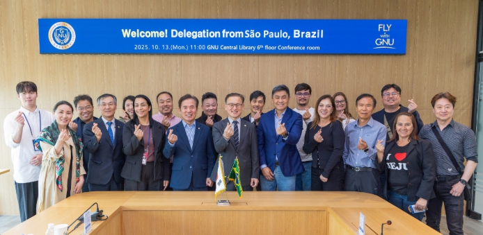 [뉴스다컴] 경상국립대학교는 브라질 상파울루시 대표단이 10월 13일 오전 경상국립대학교를 내방하여 권진회 총장을 예방하고 우주항공, 문화콘텐츠, 미디어 분야의 협력 방안을 논의했다고 밝혔다.