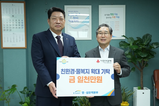 [뉴스다컴] 전라남도 나주시는 한국수자원공사 영·섬유역본부와 나주수도지사가 지역의 환경 보호와 물 복지 증진을 위해 24일 지원금 1천만 원을 기탁했다고 밝혔다.