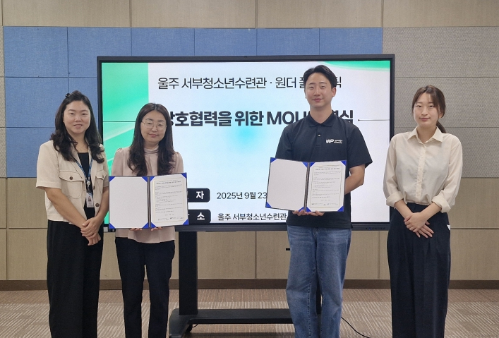 [뉴스다컴] 울주군시설관리공단(이사장 최인식) 서부청소년수련관은 9월 23일, 자원순환 및 환경 교육 활성화를 위해 ㈜원더플라스틱(대표 김민석)과 업무협약을 체결했다.