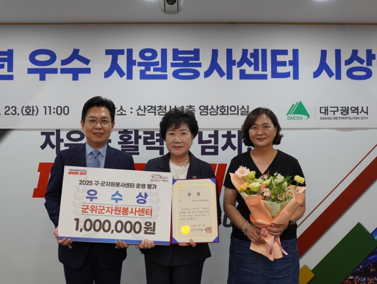 [뉴스다컴] 군위군은 지난 23일 (사)군위군자원봉사센터(센터장 김정애)가 '2025 대구광역시 구·군 자원봉사센터 평가'에서 ‘찾아가는 이웃사랑 자원봉사’ 사업으로 우수상을 수상하는 쾌거를 이뤘다고 밝혔다.