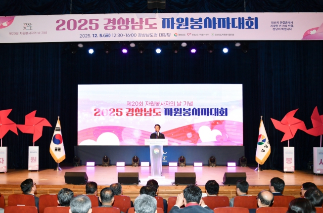 [뉴스다컴] 경상남도의회 최학범 의장은 12월 5일, 도청에서 열린 ‘2025 경상남도 자원봉사자대회’에 참석해 자원봉사자들을 격려하고 유공자 수상자들에게 축하를 전했다.