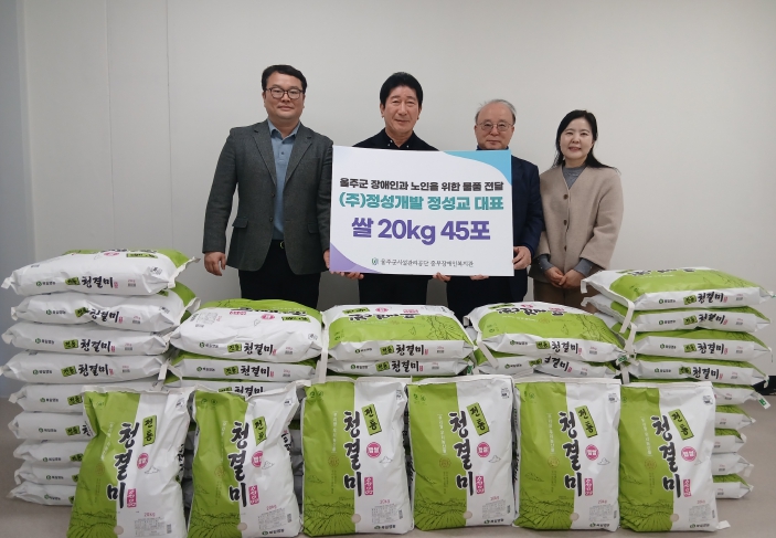 [뉴스다컴] 울주군시설관리공단(이사장 최인식) 중부장애인복지관은 12월 16일, ㈜정성개발(대표 정성교)로부터 백미 20kg 45포를 후원받아 전달식을 진행했다.