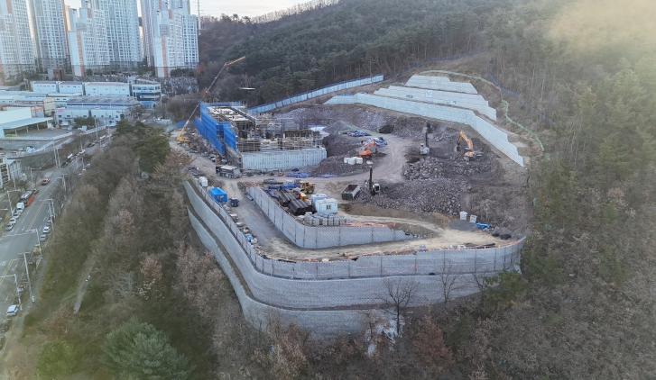 올해 2월 착공한 달서중·고 이전 신축 현장은 건물 외부 주요 옹벽공사를 완료하고, 현재 중·고등학교 건물 골조 공사에 한창이다.
