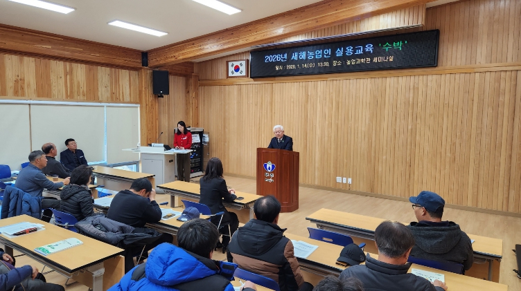[뉴스다컴] 2026년 무주군 새해 농업인 실용 교육이 지난 14일 무주읍을 시작으로 오는 2월 5일까지 6개 읍·면 행정복지센터와 농업기술센터 농업과학관, 농민마당 등지에서 진행된다.