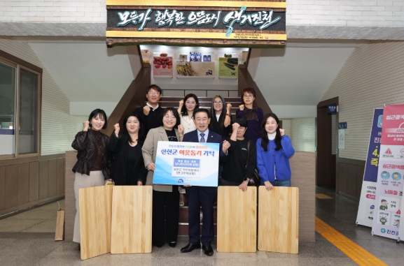 [뉴스다컴] 서전고 학부모동아리(회장 홍세연)와 한그루목공방(공방장 김태우)은 23일 진천군을 방문해 정성껏 제작한 목공 밥상(100만원 상당)을 기탁했다.