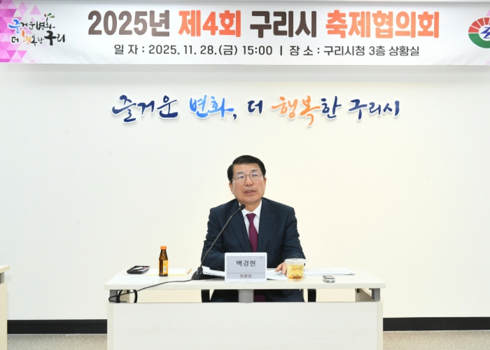 [뉴스다컴] 구리시는 11월 28일 오후 3시 구리시청 상황실에서 ‘2025 제4회 구리시 축제협의회’를 개최하고, 지난 9월 26일부터 28일까지 열린 2025 구리 코스모스 축제 추진 결과와 향후 개선 과제를 공유했다. 아울러 2025 구리 빛 축제 중간 보고회도 함께 진행했다.