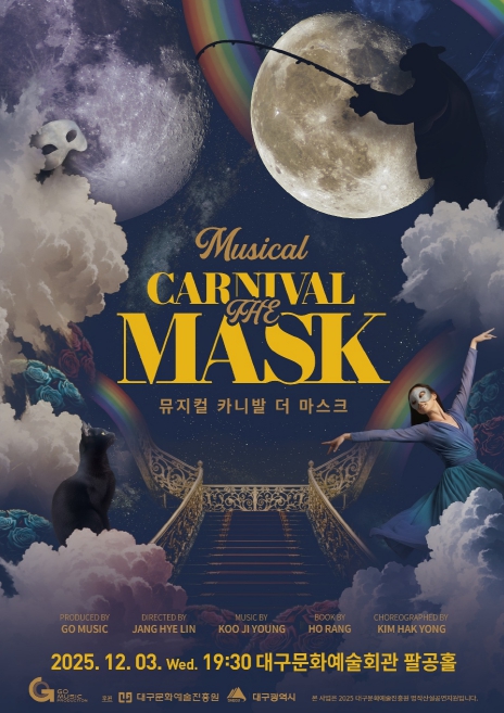 먼저 12월 3일에 공연되는 지오뮤직(GO MUSIC)의 ‘CARNIVAR – THE MASK(카니발-더 마스크)’는 눈과 귀를 사로잡는 화려한 음악과 퍼포먼스, 공감과 울림을 선사하는 감성적인 서사, 무대 위에서 살아 숨 쉬는 환상의 세계를 그려낸 마치 축제 같은 쇼 뮤지컬의 세계로 이끈다.