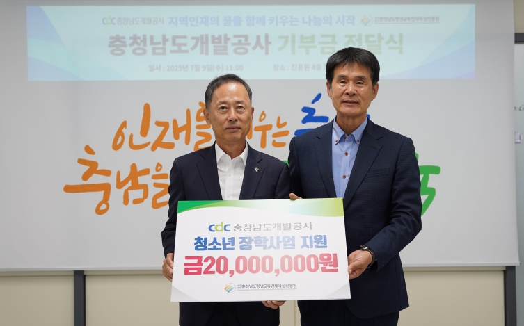 충남개발공사 김병근 사장은 “이번 기부를 통해 충남의 미래를 이끌어갈 인재를 발굴하고, 교육 환경 개선에 기여할 수 있어 뜻깊다” 며 지역사회와의 지속적인 협력 의지를 밝혔다.