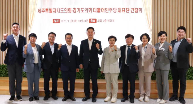 ▲ 경기도의회 더불어민주당 제주도의회 더불어민주당 대표단과 간담회 진행 |