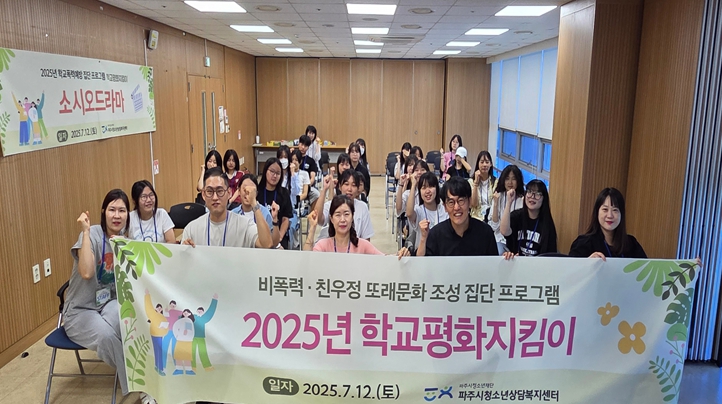 [뉴스다컴] (재)파주시청소년재단 파주시청소년상담복지센터는 2025년 7월 12일, 청소년이 주체가 되어 건강한 또래문화를 조성하고 공감과 배려의 문화를 확산하기 위한『2025년 학교평화지킴이』 프로젝트를 성황리에 진행했다. 2012년부터 2025년까지 해마다 30명~50여 명의 평화지킴이를 양성한 바 있다.