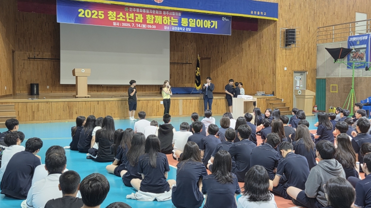 [뉴스다컴] 민주평화통일자문회의 청주시협의회는 14일 금천중학교 강당에서 ‘2025 청소년과 함께하는 통일이야기’를 개최했다.