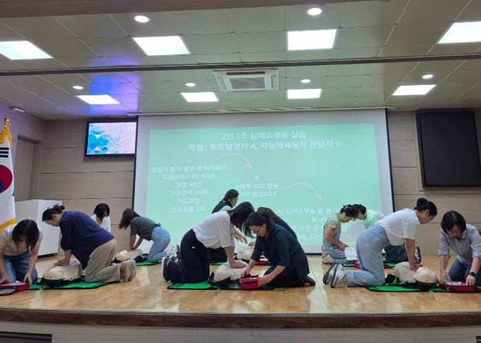 [뉴스다컴] 의정부교육지원청은 16일, 선택형 돌봄 초등보육전담사 대상으로 역량강화 연수를 실시했다. 이번 연수는 심폐소생술 실습 교육으로, 위급 상황 발생 시 신속하고 정확한 대응 능력을 기르기 위해 마련됐으며, 안전한 돌봄 프로그램 운영을 위한 필수적인 교육으로 진행됐다.
