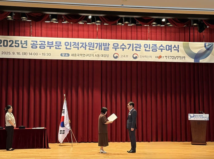 교육부와 인사혁신처가 공동 주관하는 ‘공공부문 인적자원개발 우수기관 인증제’는 인적자원관리(HRM)와 인적자원개발(HRD)에 대한 모범적인 기준을 달성한 우수 공공기관을 인증하는 것으로, 인증 자격은 3년간 유지된다.
