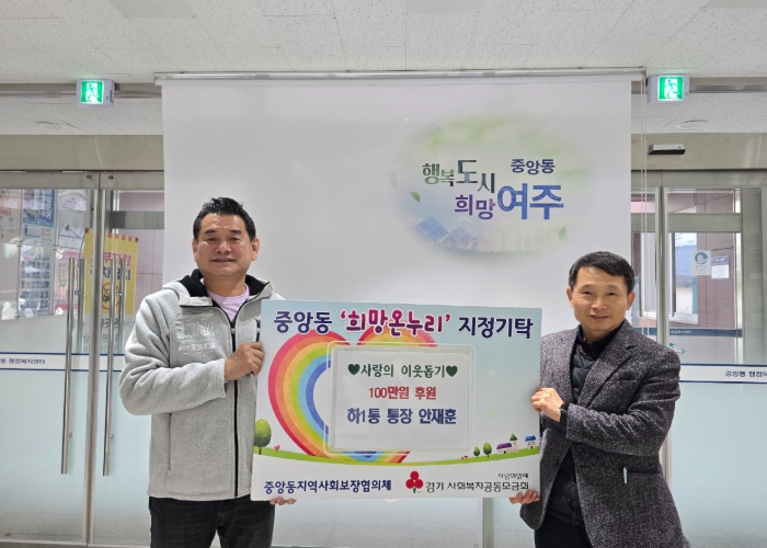 한편, 이번에 전달된 성금은 중앙동 희망온누리 계좌에 입금돼 지역 내 취약계층 지원과 복지 사각지대 해소를 위한 다양한 복지사업에 활용될 예정이다.
